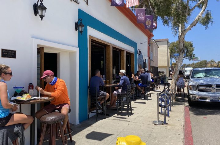 Credit: Courtesy of Eric Christiansen Above: Customers dining on the sidewalk in front of Guava Beach Bar and Grill in...