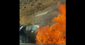 Dramatic Video Shows 2 Rescued From Burning Car In San Diego County – CBS Los Angeles