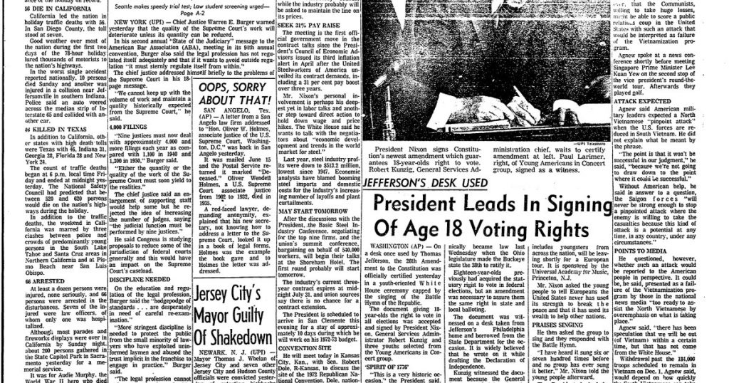 From the Archives: 50 years ago the 26th Amendment gave 18-year-olds the right to vote