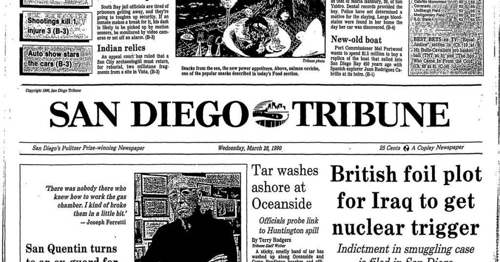From the San Diego Tribune, Wednesday, March 28, 1990: