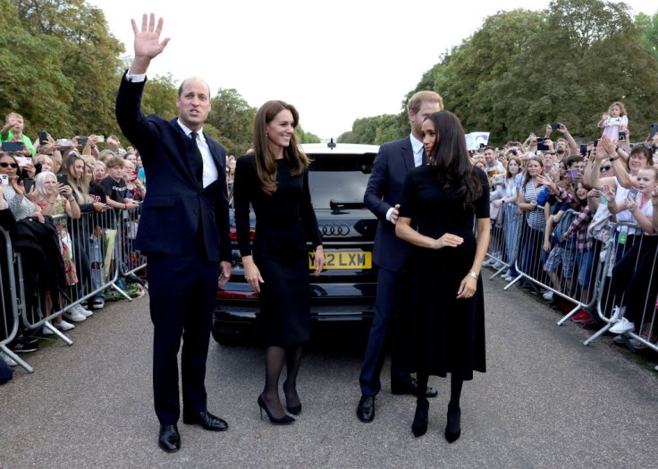On Sept. 10, 2022, two days after the late monarch passed away at age 96, Prince William and Middleton walked alongside the Duke and Duchess of Sussex as they greeted mourners outside of Windsor Castle in England.