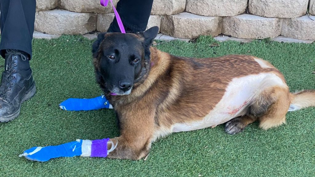 “The officer released his K-9 partner, Titan, to assist and the suspect stabbed him,” police said.