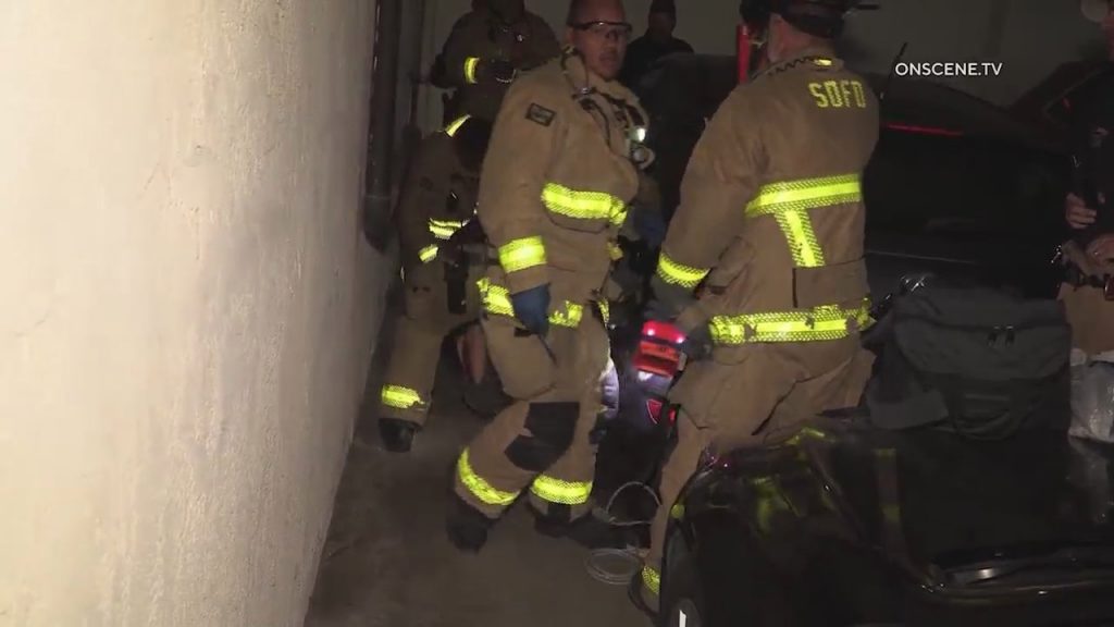 The San Diego Police Department said they responded to a report at around 6 a.m. of a person injured calling for help at 6200 Rancho Mission Road. When they arrived at the location, authorities found a man trapped underneath a car parked in a woman’s car port.