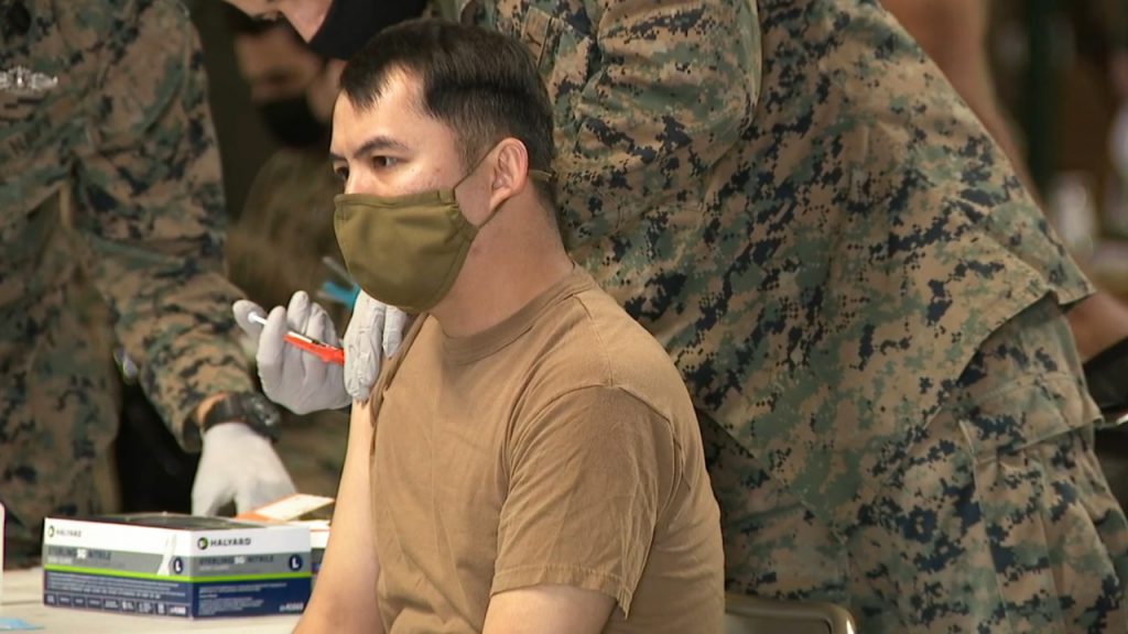 SAN DIEGO — Marines and sailors at Marine Corps Air Station Miramar have been getting vaccinated against COVID-19 for the past three weeks, joining a growing number of people becoming inoculated in San Diego County.