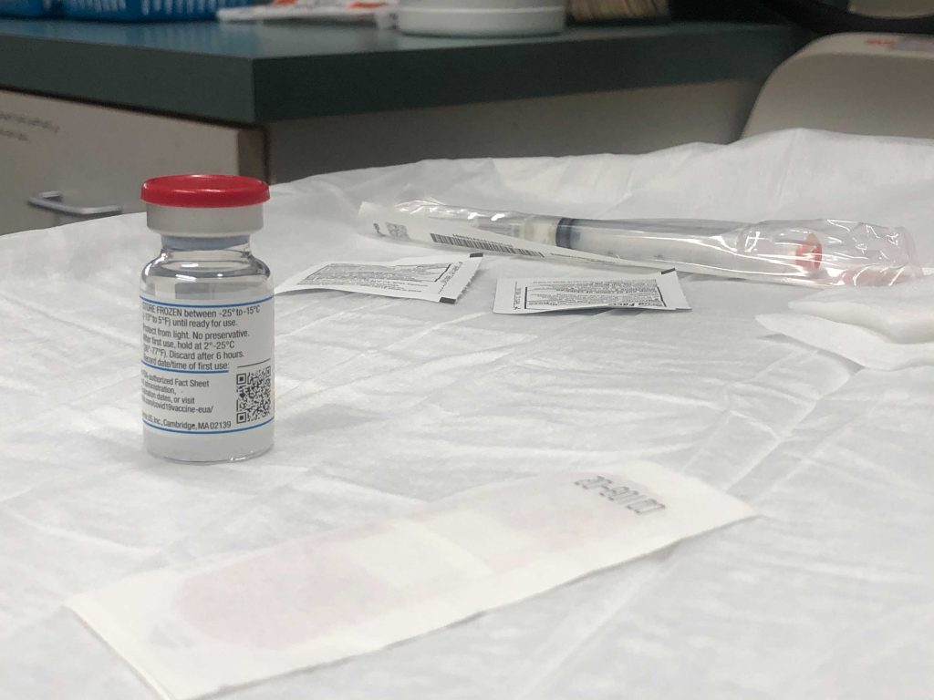 Above: The Moderna COVID-19 vaccine sits next to a syringe in a doctor’s office at the Vista Community Clinic, Jan. 8, 2021.