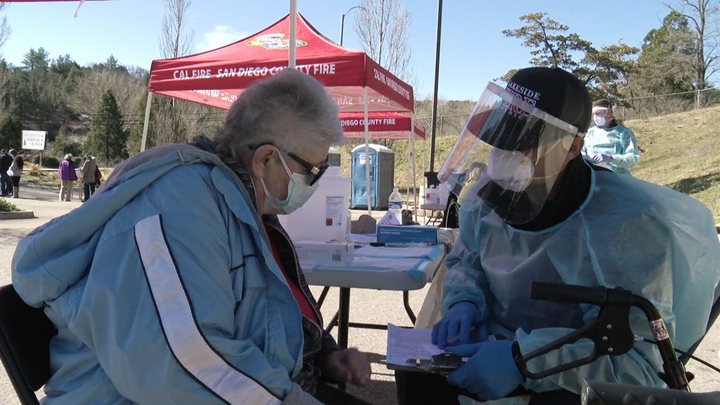 Cal Fire San Diego has been setting up vaccinations for long-term care facilities and popping up mobile sites in rural areas that last for just a couple days. On Tuesday and Wednesday, fire crews were at the Julian Library vaccinating residents 65 and older, health care workers and first responders.