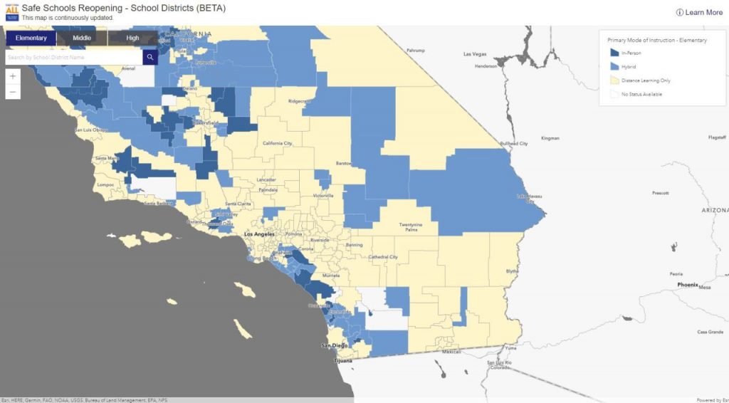 The guidelines came the same day Gov. Gavin Newsom unveiled a new interactive map for parents to monitor the status of school districts, charter schools and private academies across the state.