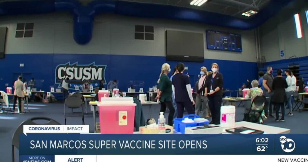 SAN MARCOS, Calif. (KGTV) – A third San Diego County Vaccination Super Station is now open at the California State University, San Marcos Sports Center.