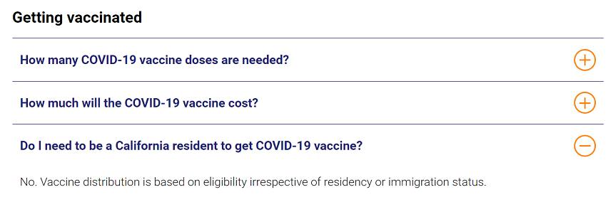 “Vaccine distribution is based on eligibility irrespective of residency or immigration status,” the state’s website reads.